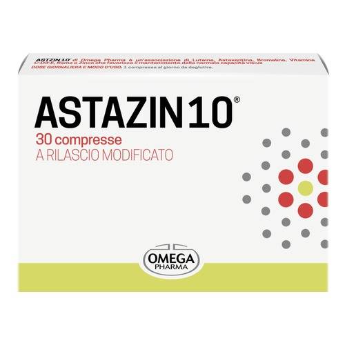 Integratore alimentare a base di astaxantina, luteina e zeaxantina (FloraGLO) da Tagetes erecta con azione antiossidante, bromelina da Ananas comosus per la funzionalità del microcircolo, acido folico, vitamina D3 e vitamine C ed E, rame e zinco che contribuisce al mantenimento della capacità visiva.