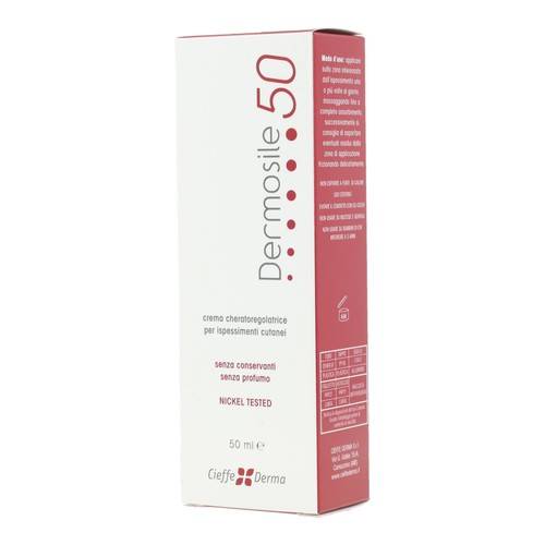 Dermosile 50 Crema cheratoregolatrice a base di urea 50%, specifica per contrastare l'eccessivo ispessimento cutaneo senza profumo e senza aggiunta di conservanti. Indicata per il trattamento di zone circoscritte (mani, piedi, unghie, gomiti), facilita la rimozione meccanica delle callosità e delle ipercheratosi. E' una crema ricca di a-idrossiacidi con spiccata attività cheratoregolatrice.