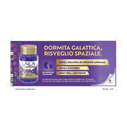 Laila DormiBene contiene un complesso di 5 estratti botanici: ashwagandha, camomilla, melissa, lavanda, valeriana + melatonina.
