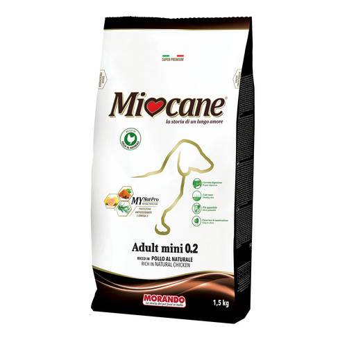 Miocane Adult mini 0.2 Alimento completo per cani adulti con peso inferiore ai 10 kg, crocchette mini gusto pollo.