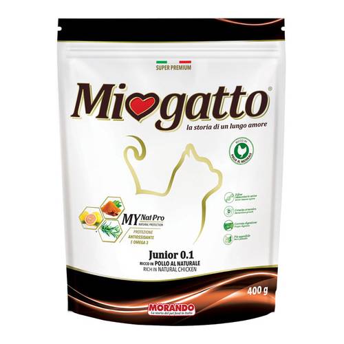 Miogatto Junior 0.1 Alimento completo per gatti cuccioli, crocchette con carni bianche.