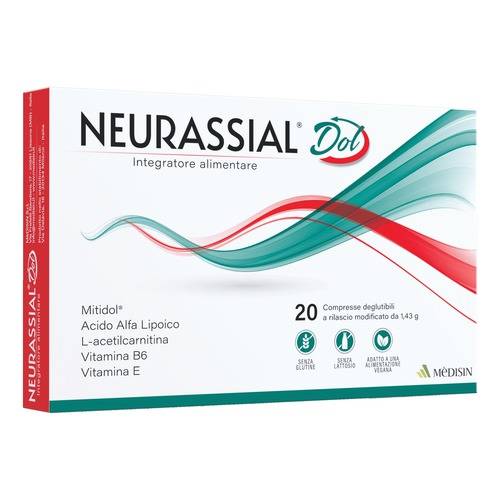 Acido alfa-lipoico; agenti antiagglomeranti: acidi grassi, talco, sali di magnesio degli acidi grassi, biossido di silicio; L-acetil carnitina idrocloruro; mitidol: estratto di zenzero e acmella-fosfolipide [dispersione solida di lecitina di soia ed estratti di Zingiber officinalis Rosc. (rhizoma) e Acmella oleracea (L.) R.K. Jansen, (herba c. oribus)]; maltodestrina; agenti di carica: cellulosa microcristallina (gel di cellulosa), fosfati di calcio; vitamina E (DL-alfa-tocoferil acetato), vitamina B6 (piridossina cloridrato); agente di rivestimento: etilcellulosa, idrossi-propil-cellulosa, cera di carnauba.