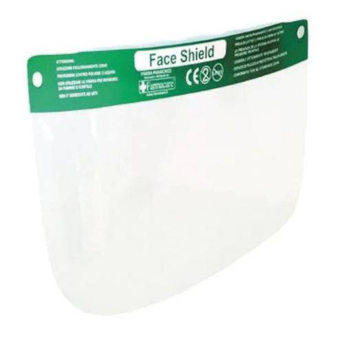 Confezione in busta singola non sterile contenente 1 visiera paraschizzi da 32x22 cm.
